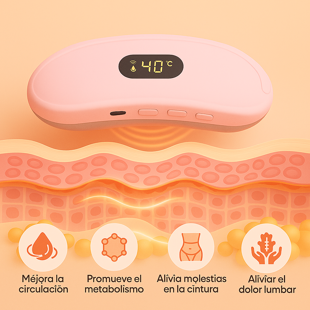 completamente seguro. El cinturón está diseñado con materiales de calidad, sistemas de protección contra sobrecalentamiento y apagado automático. Lo puedes usar tantas veces como lo necesites durante tu ciclo o incluso fuera de él, siempre dentro de las sesiones recomendadas de 30 minutos.